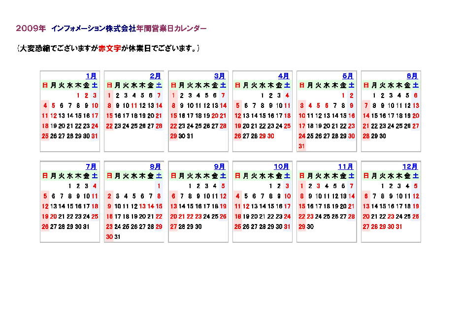 œƒCƒ“ƒtƒHƒ[ƒVƒ‡ƒ“Дޮ‰ïŽÐ‚Q‚O‚O‚X”N”NŠÔ‰c‹Æ“úƒJƒŒƒ“ƒ_[